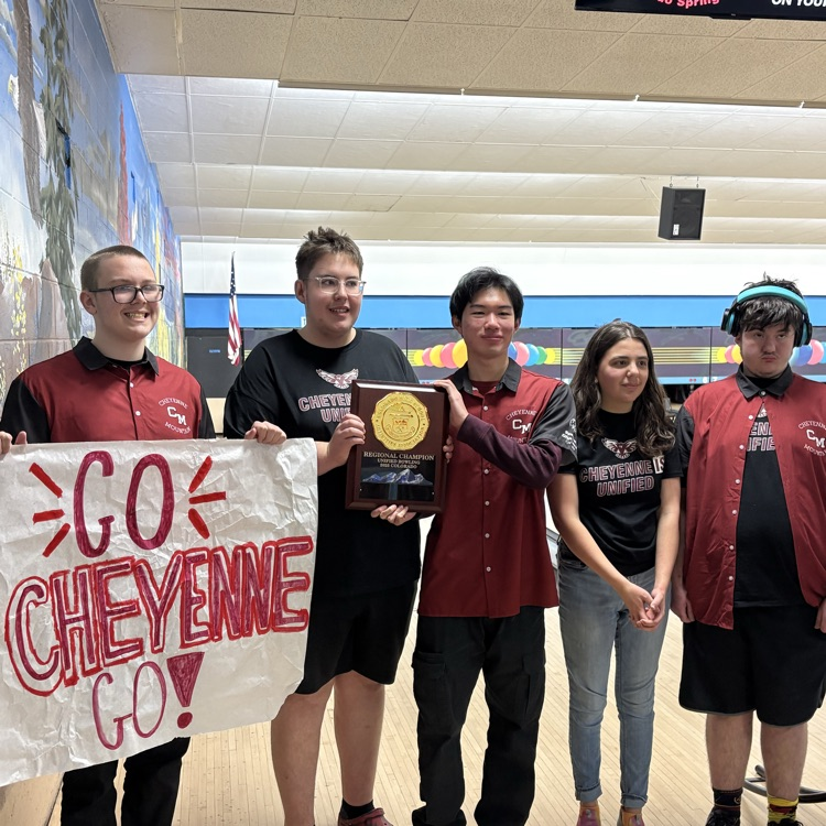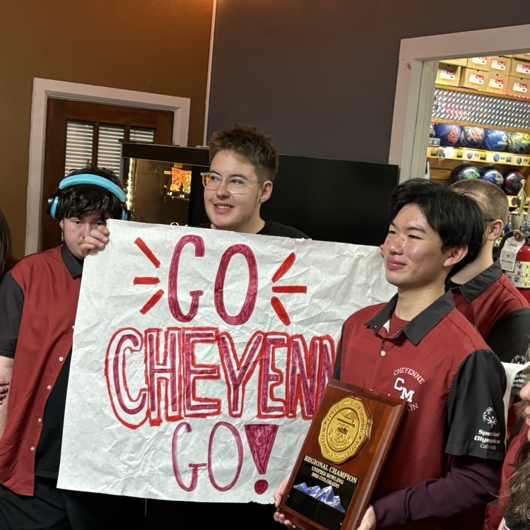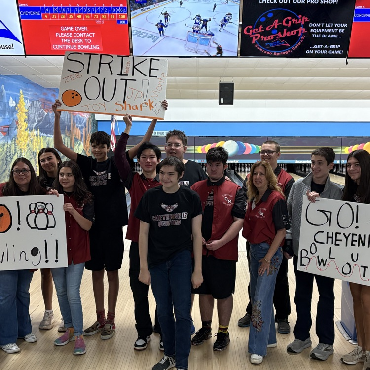 Cheyenne Mountain Red Tail Hawks celebrating their 1st place finish in bowling. On their way to the championship.