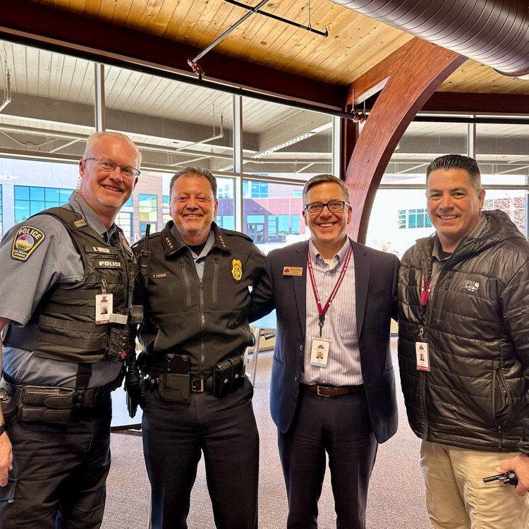 Bringing this previous post back to the top of our feed...It is Law Enforcement Appreciation Month and we are SO thankful for our School Resource Officer, Bill Walsh, and all he does to keep D12 safe! He is supported by Sergeant Rick Bubacz, CSPD Chief Vasquez, and our Security Coordinator, Carlos Sandoval, former CSPD Sergeant. We have the best Security team in town and we thank them for all their years of service in law enforcement!!!